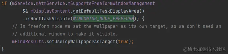 即在Freeform的场景下直接将壁纸进行显示,不需要再额外找一个目标窗口了,这算是一种对需要显示壁纸的特殊场景的处理。