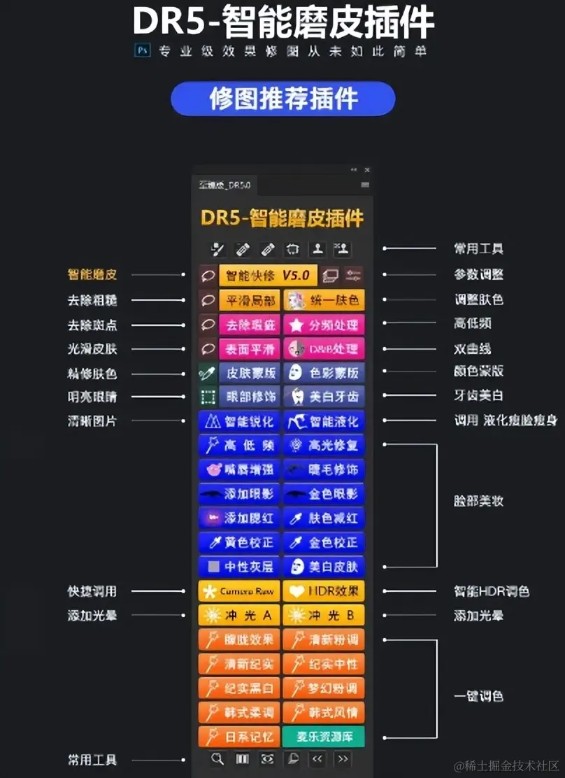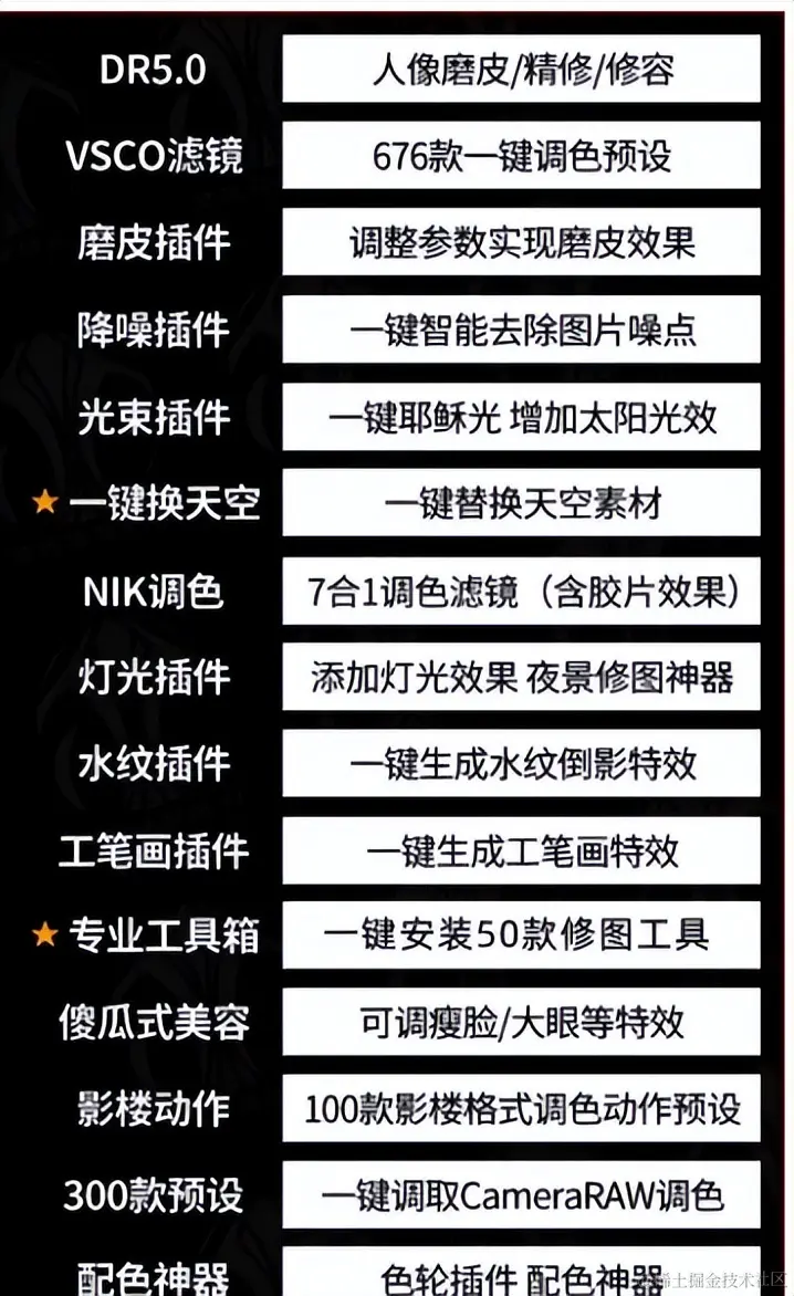 PS作为摄影和设计师日常工作中的核心工具,其强大的图像处理能力可以对图片进行编辑、修改、调色等特效处理,极大地增强了图片的视觉效果。而PS的扩展插件则进一步扩展了其功能,为创意工作提供了无限可能。