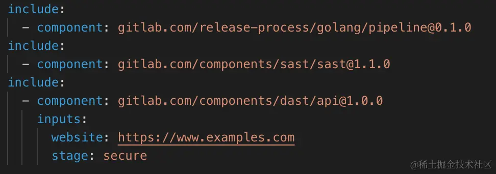 当使用关键词 include:component来使用组件时,你应该使用已经发布的语义版本。~latest的使用会继续支持,但是它总会返回最新发布的版本,因此使用的时候务必要小心,因为它可能会包含一些破坏性的变更。暂时不支持速记语法,但是会在将来的里程碑中支持。