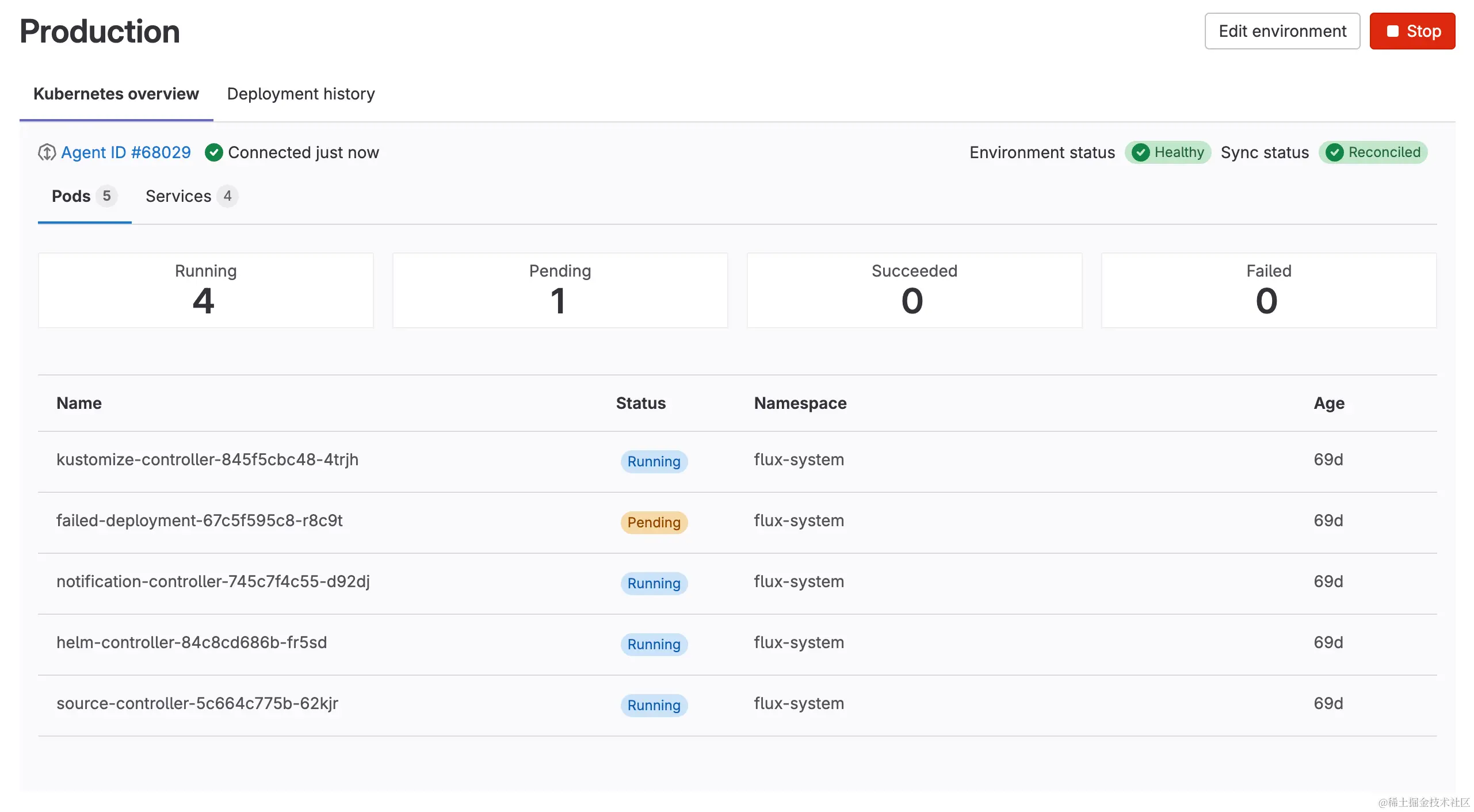 在极狐GitLab 16.10 中,我们对环境详情页面进行了改进。当你从环境列表中选取一个环境时,你可以看到关于你的部署以及连接的 Kubernetes 集群的最新信息,所有信息都在一个层级里面。