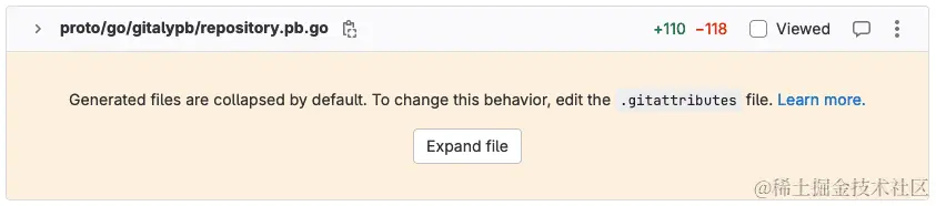 对于默认这些的那些文件类型,可以查阅相关的文档。如果想要在合并请求中折叠更多的文件以及文件类型,只需要在你项目的 .gitattributes文件中将其指定为 gitlab-generated即可。