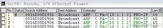 抓到的结果与第2种情况一样,A依然是先广播询问11.1.1.1的MAC,这个ARP广播被B接到后,B有义务应答,于是双方知道对方MAC,所以能PING通。