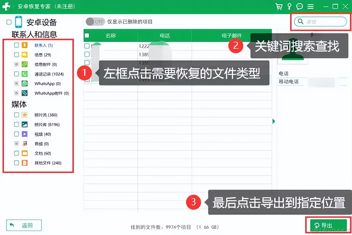 如果恢复出厂设置之前没有进行过数据备份,那么恢复出厂设置后的数据怎么恢复?我们可以通过使用第三方数据恢复软件来尝试恢复这些数据,如【数据蛙安卓恢复专家】,适用绝大多数的安卓手机,信誉度高且可靠性强,可以在一定程度上帮助我们扫描手机中的已删除文件,并将数据导出。以下是小编的使用过程: