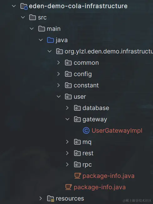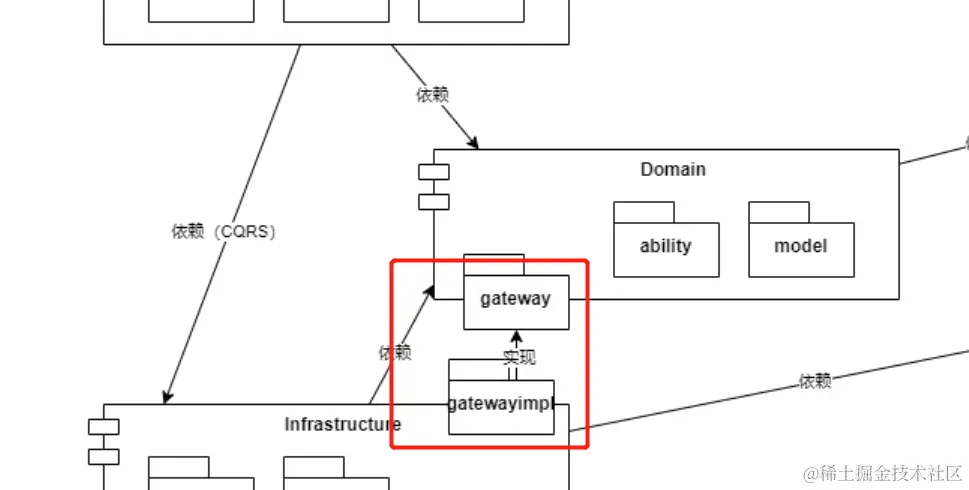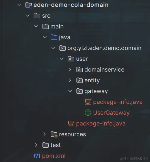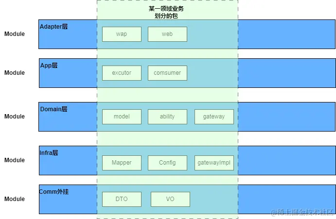 具体的adapter等层中,由参照领域划分原则进行包的划分,而Domian层中的gateway仅仅定义interface,而在infrast层中进行gateway的Impl类,由此完成了巧妙地依赖倒置,解耦了Domain,让Domain地module作为一个内聚的个体,聚焦核心业务开发。