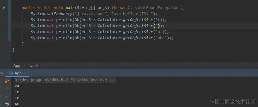 System.out.println(ObjectSizeCalculator.getObjectSize(3L));