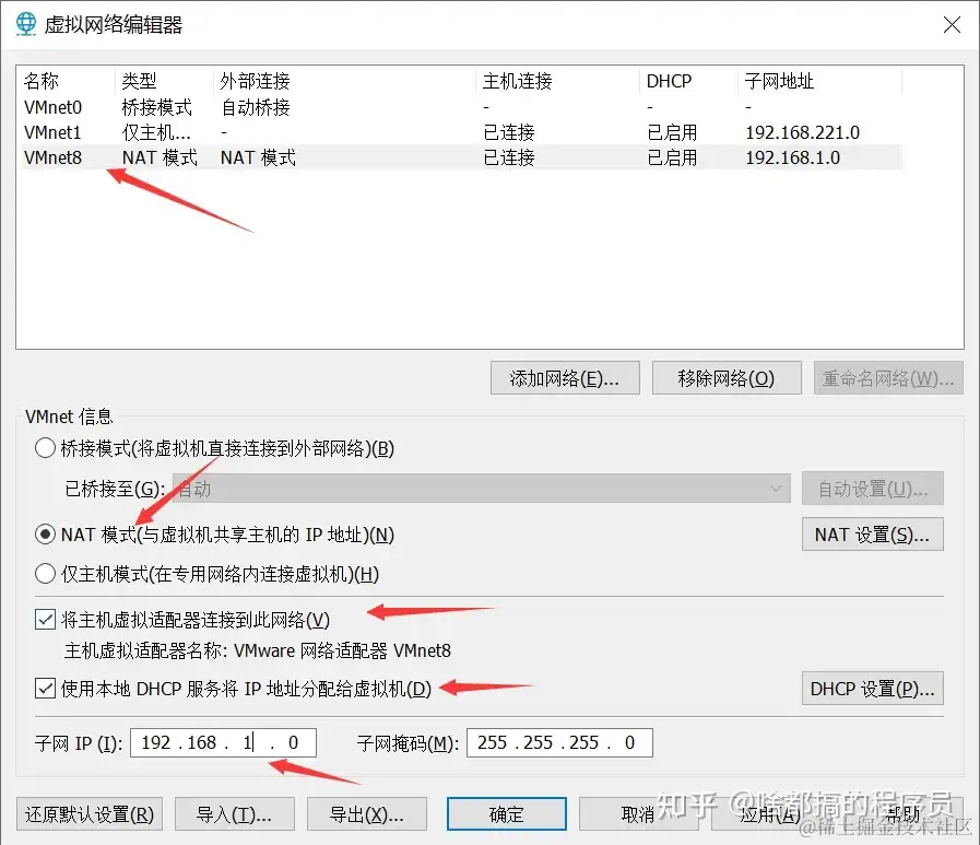 设置虚拟机V8 IP为192.168.1.0