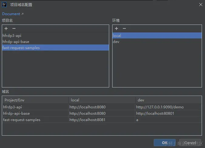 接下来点击管理文件,将fast-request-samples填入,环境这里就先使用local。