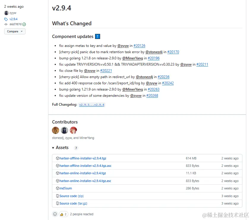 ➜ ~ wget https://github.com/goharbor/harbor/releases/download/v2.9.4/harbor-offline-installer-v2.9.4.tgz