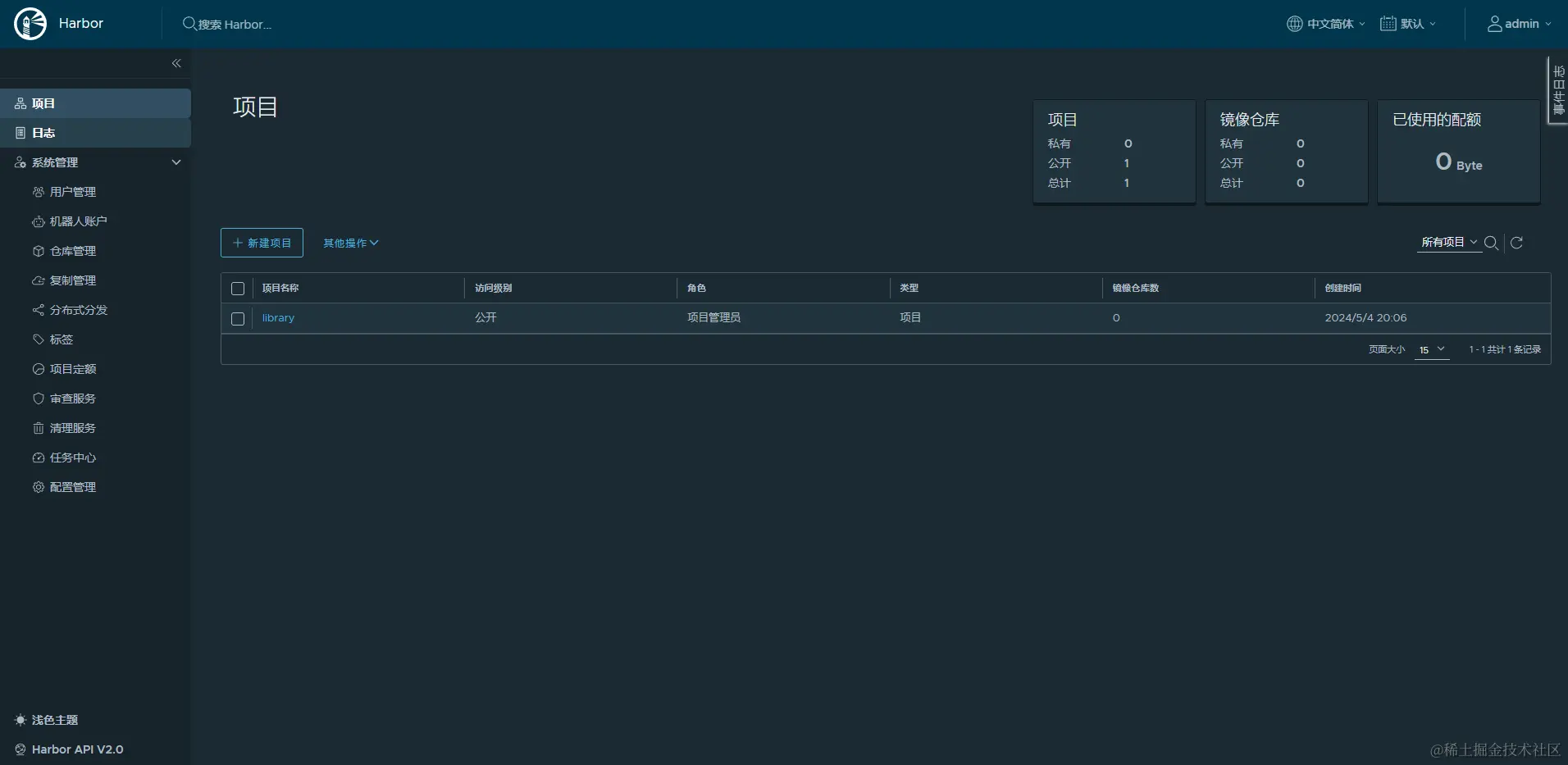 Harbor 内置了一个Web UI,通过浏览器访问,进行管理。如下图