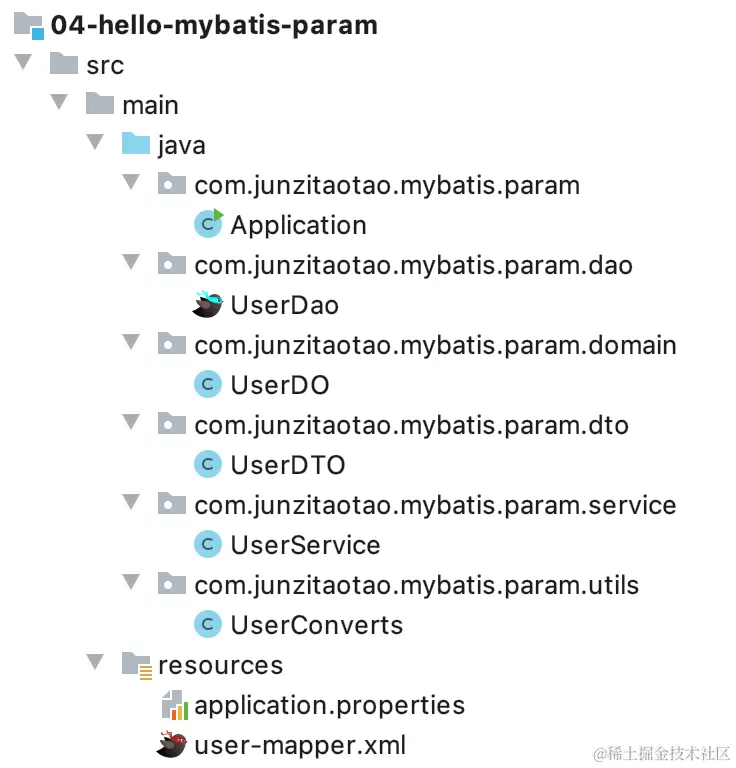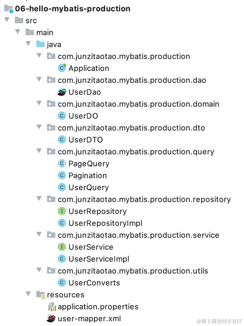 <mapper namespace="com.junzitaotao.mybatis.production.dao.UserDao">