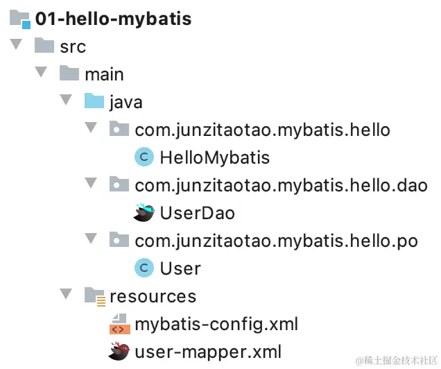 <mapper namespace="com.junzitaotao.mybatis.hello.dao.UserDao">