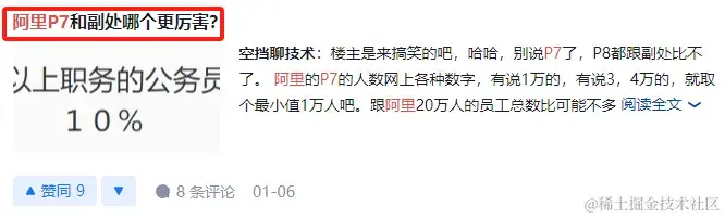 知乎上甚至有人问:阿里P7和副处哪个厉害。