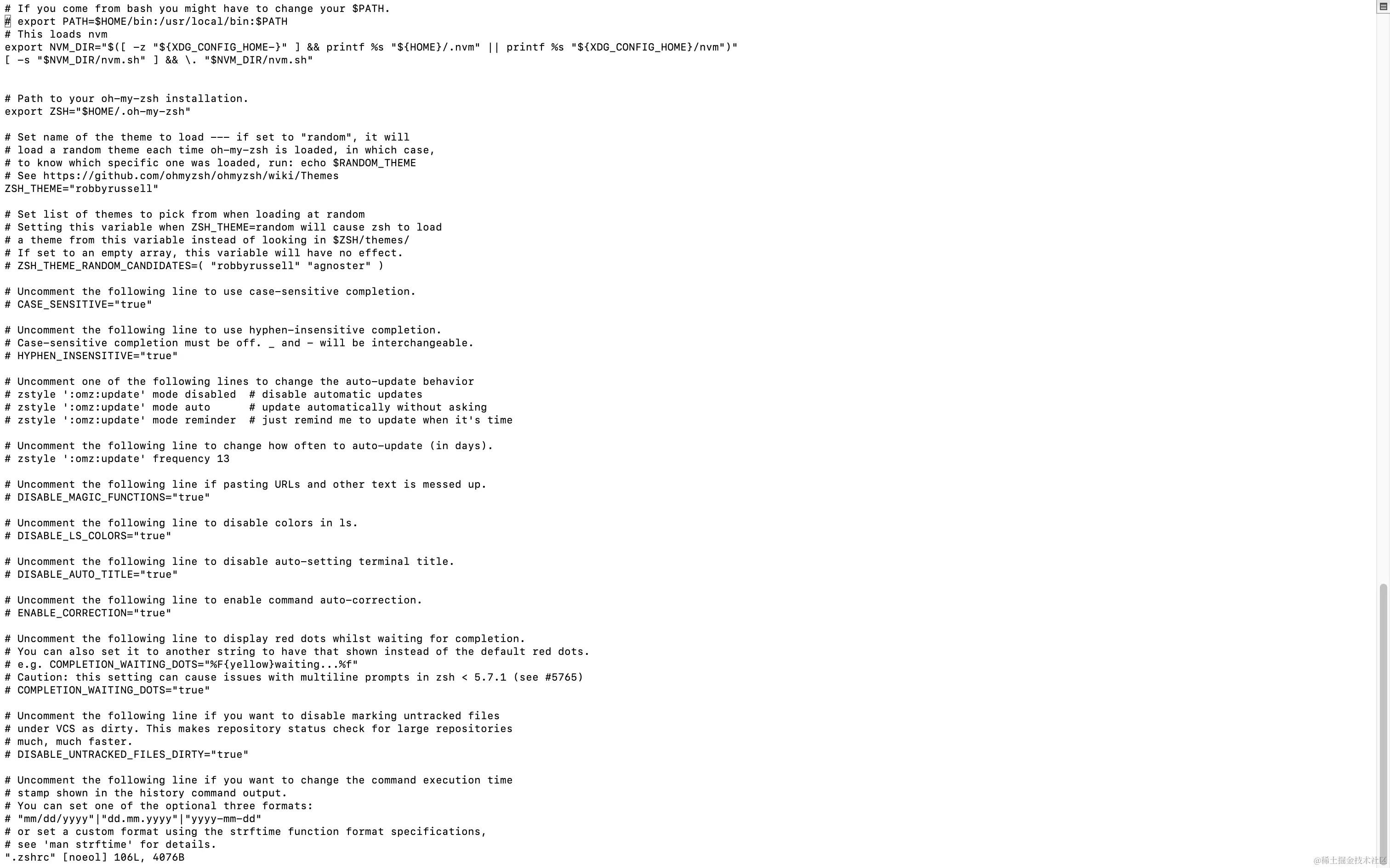 用于对照的增加完代码后的.zshrc源文件