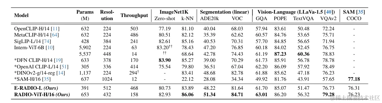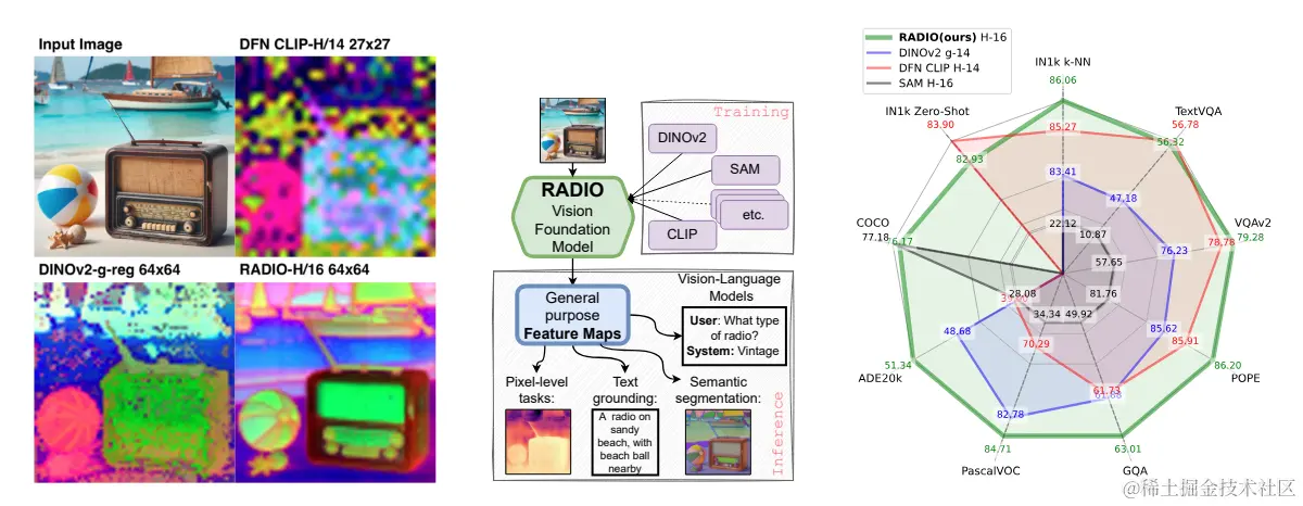 通过多教师蒸馏,AM-RADIO 成功地将这些教师模型的独特属性融合到一个统一的模型中,使其能够在多个任务上表现出色。
