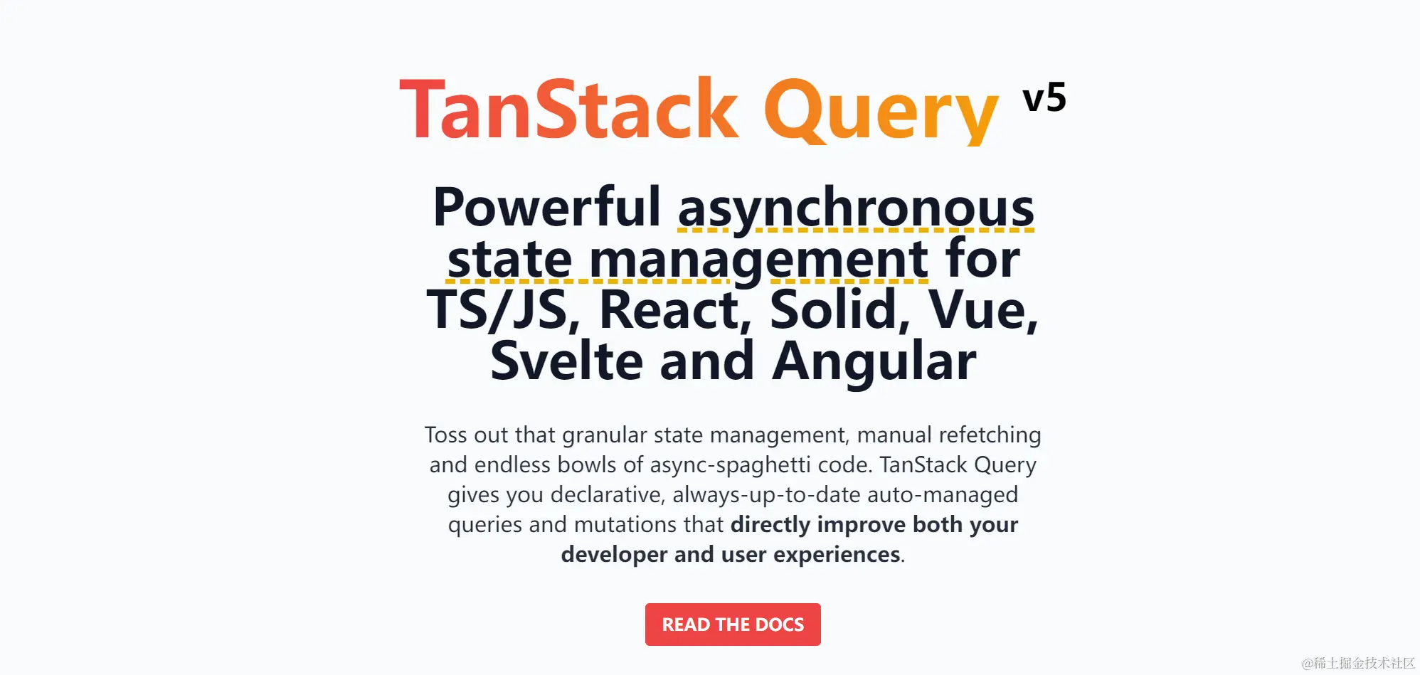 值得一提的是,TanStack Query 前身是 React Query,是 React 社区里很受欢迎的一套方案。在 V4 版本后,被设计成了与框架无关的通用解决方案。