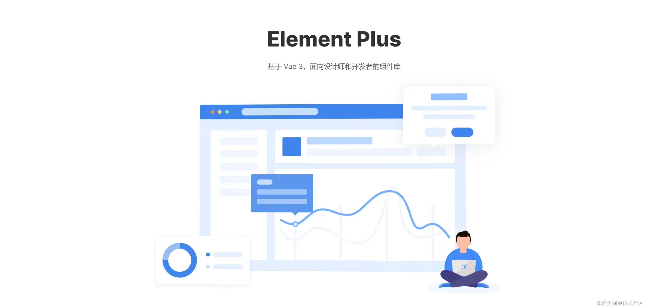 Element 是由中国的一个企业开源的 UI 库,拥有强大的中英文社区。基于 Vue 3 版本的 Element Plus 则是由社区驱动的。
