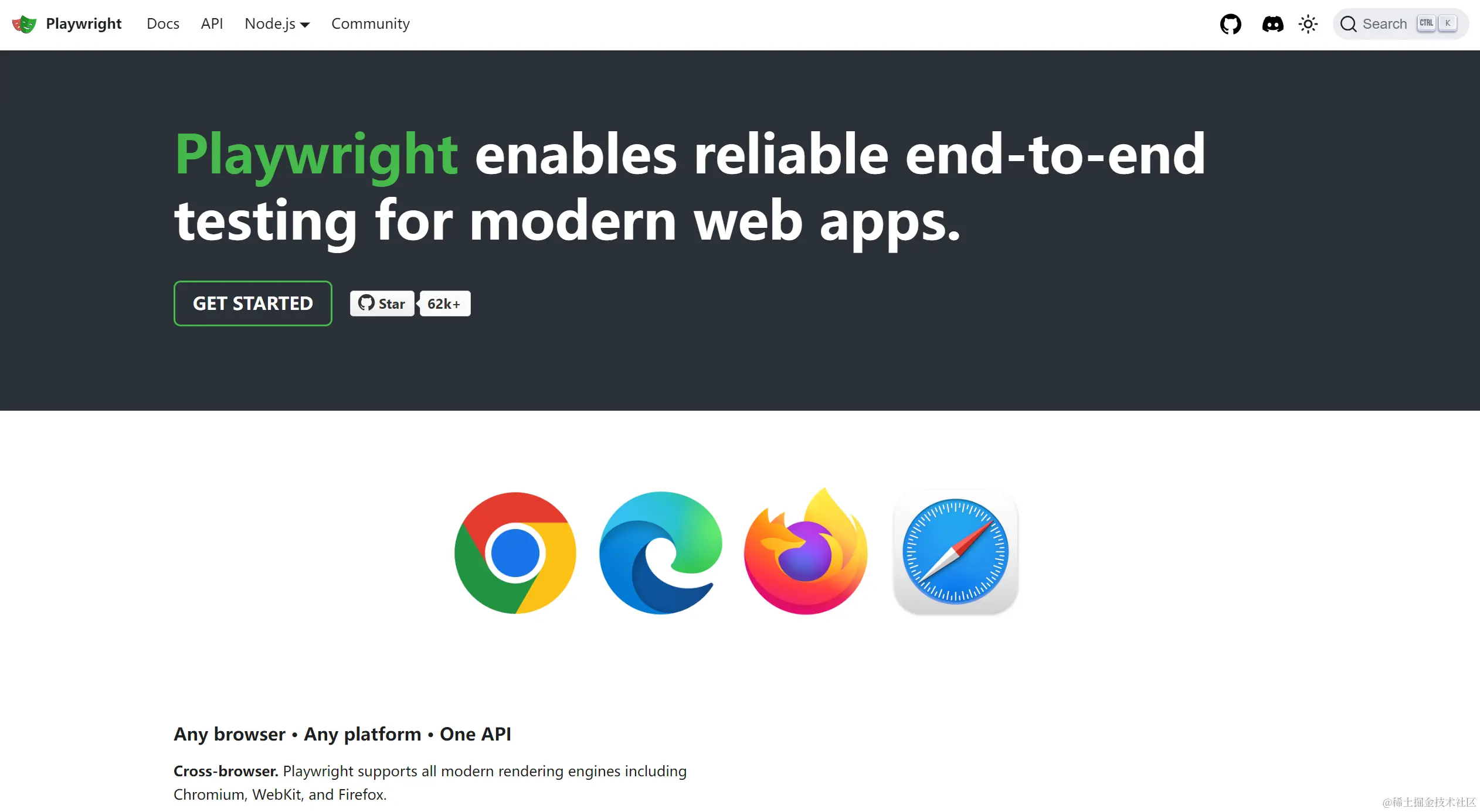 Playwright 已成为社区中的另一个流行选择,因为它能够使用单一 API 跨任何浏览器或平台进行测试。