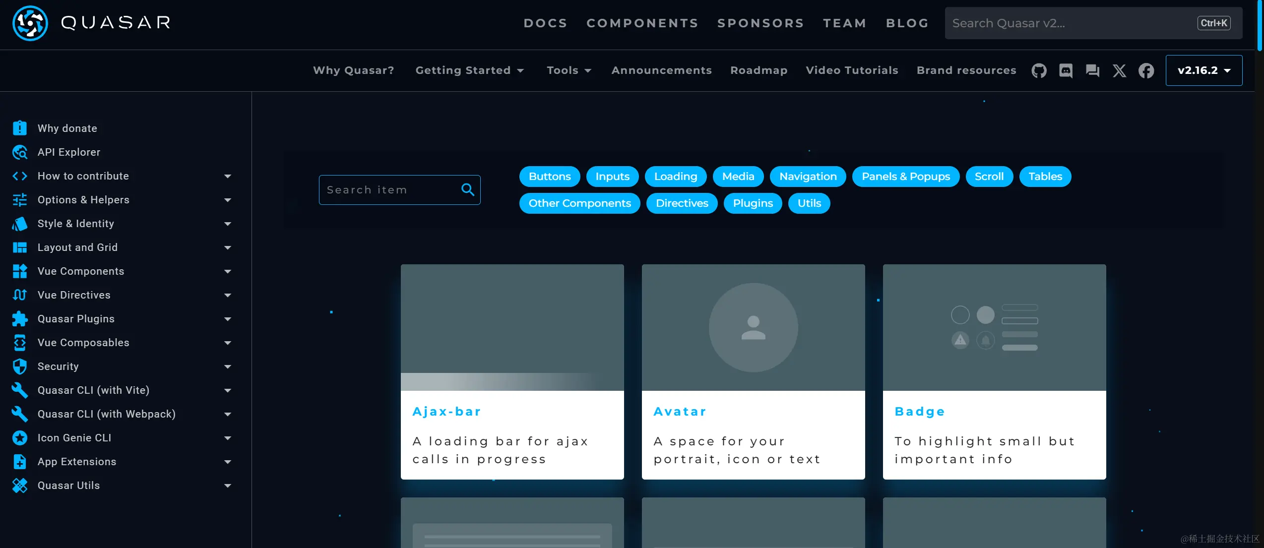Quasar Components 是为使用 Quasar 的用户提供符合 Material Guidelines 的用户界面组件。