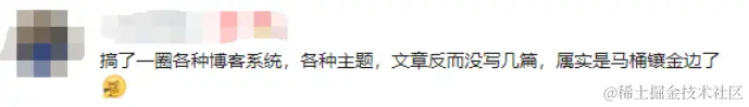 这话整得我当下背后一凉哈哈哈,有被内涵到🤡(×不是哈哈哈哈)。像是一开始接触hexo的时候,单纯只是抱着玩玩的态度,也曾尝试过在各种不同的博客平台、主题之间蹦跶拉吧,最后兜兜转转选择了最适配自身日常技术、学习总结习惯的方案。
