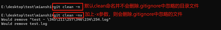 -x(可选):指定删除.gitignore忽略规则中指定的文件和目录。