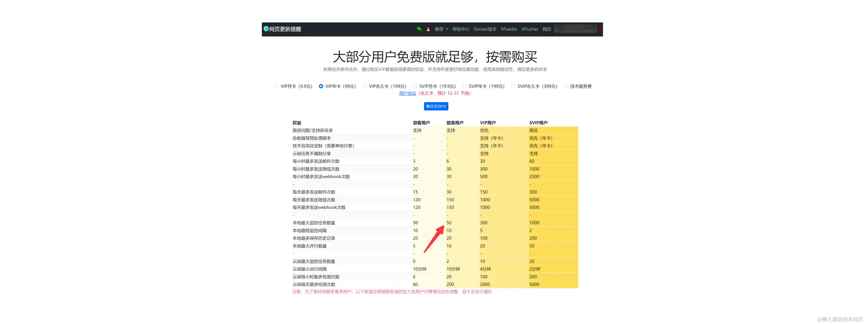按下图注册后,免费版支持监控50个网页,正如开发者所说:大部分用户免费版就足够。