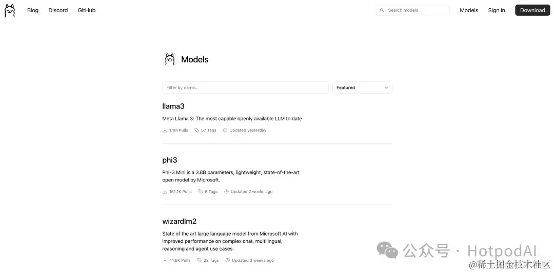 安装完成后,点击自定义应用,就可以看到ollama Web UI,平台预置了llama2-7b(latest),llama3-8b(latest), llama3-70b, qwen-4b(latest)模型,如果需要更多的模型,可以使用ollama pull命令进行下载,ollama官方的模型仓库参见这里:ollama.com/library。