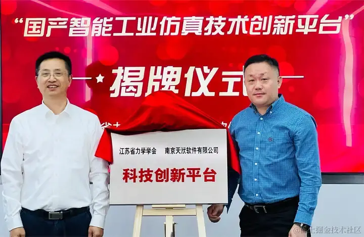 双方依托“国产智能工业仿真技术创新平台”开展国产软件开发、应用及推广等热点问题展开热烈讨论,针对如何进一步开展校企合作如课程设计、算法推广、毕业设计、学科竞赛、实习实训等方面进行充分交流。由江苏省力学学会常务副理事长钱向东、天洑软件首席联络官/文化官冯克列共同为“国产智能工业仿真技术创新平台”揭牌。