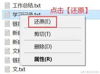 当我们发现误删了文件,但是回收站还没被清空时,可以通过该方法从回收站直接恢复文件。