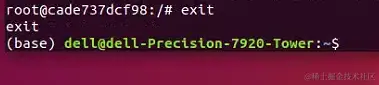 接下来,我们先通过如下的代码,退出当前镜像,回到终端中。