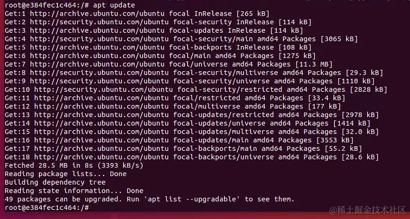 我们这里就在一个新的Ubuntu镜像中加以配置。首先,在终端中输入如下代码,创建一个Ubuntu镜像。