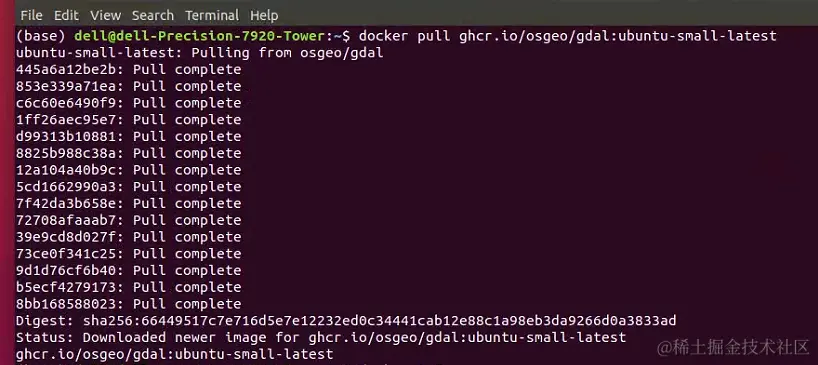 其中,那个ghcr.io/osgeo/gdal就是我们刚刚下载好的GDAL库的镜像。