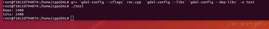 其中,g++是GNU C++ 编译器的命令,用于编译和链接C++ 代码。gdal-config --cflags表示使用gdal-config命令获取GDAL库的编译选项,包括头文件路径和其他必要的编译标志;--cflags参数告诉gdal-config命令返回编译选项。rec.cpp是要编译的C++ 源文件的文件名,也就是前面我们写的代码文件的文件名称。需要注意的是,上述代码中没有单引号,而都是反引号,大家输入的时候不要输错了。