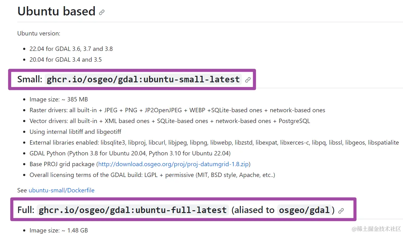 首先,我们访问GDAL库的Docker镜像官方网站。这里需要注意,虽然这个官方网站似乎并没有明确说明它提供的版本只能Python使用,但是我这里下载后发现C++ 代码确实无法调用这个镜像中的GDAL模块。