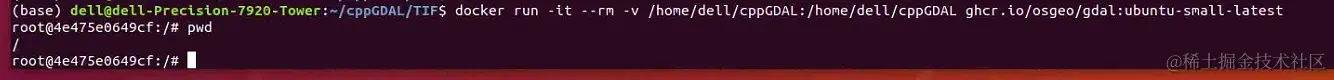 上述代码和我们前面的docker run -it --rm ghcr.io/osgeo/gdal:ubuntu-small-latest相比,很显然是多了-v /home/dell/cppGDAL:/home/dell/cppGDAL这一个部分——这一部分是用于挂载主机文件系统中的目录到容器中的命令参数。其中,-v是Docker命令中用于挂载文件或目录的选项,其后面的/home/dell/cppGDAL:/home/dell/cppGDAL,则是文件挂载的源目录和目标目录的路径——它指定了主机文件系统中的/home/dell/cppGDAL目录将被挂载到容器内的/home/dell/cppGDAL目录。