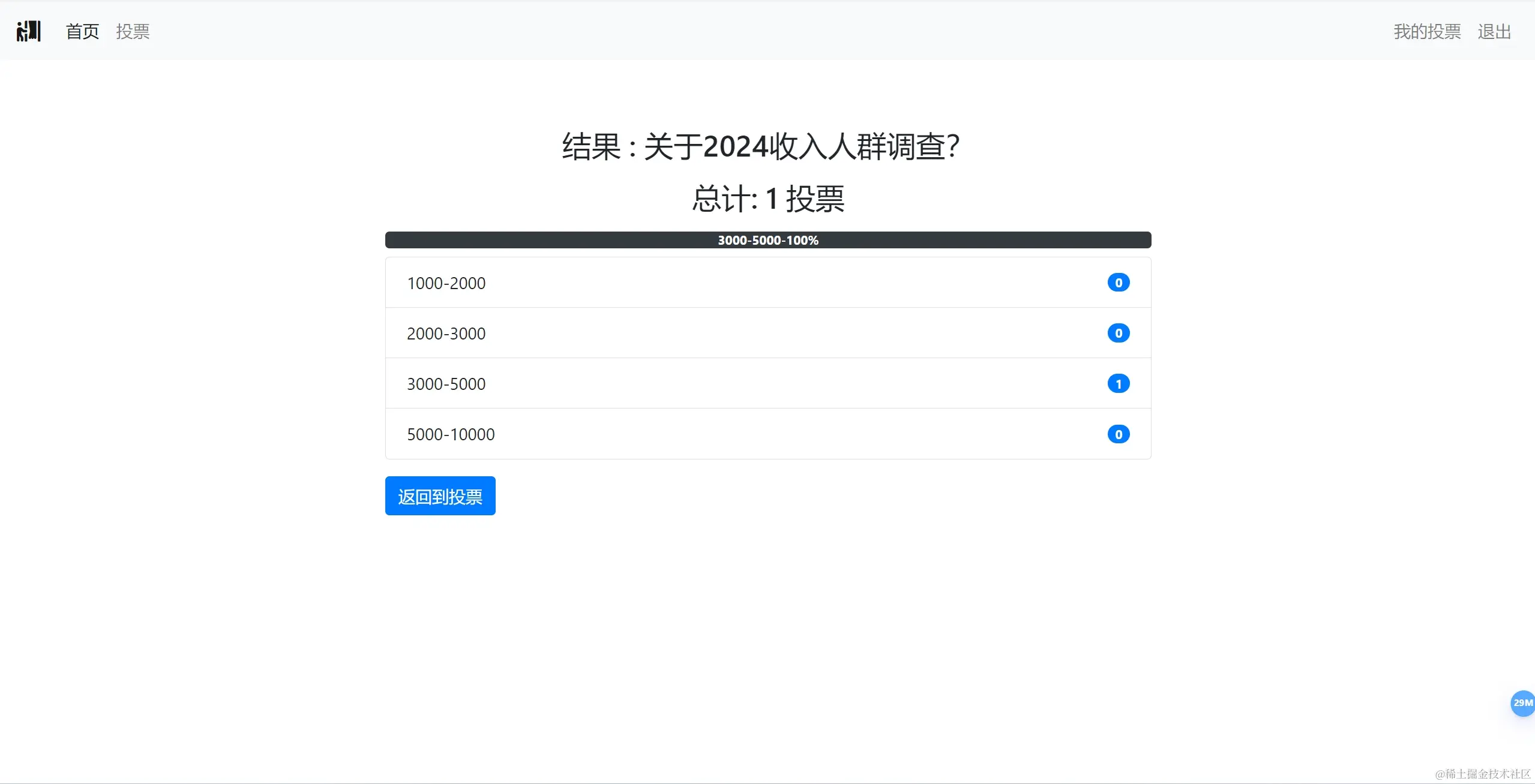 - 用户可以为自己选择的选项投票,但每个用户只能为每个投票投一次票。