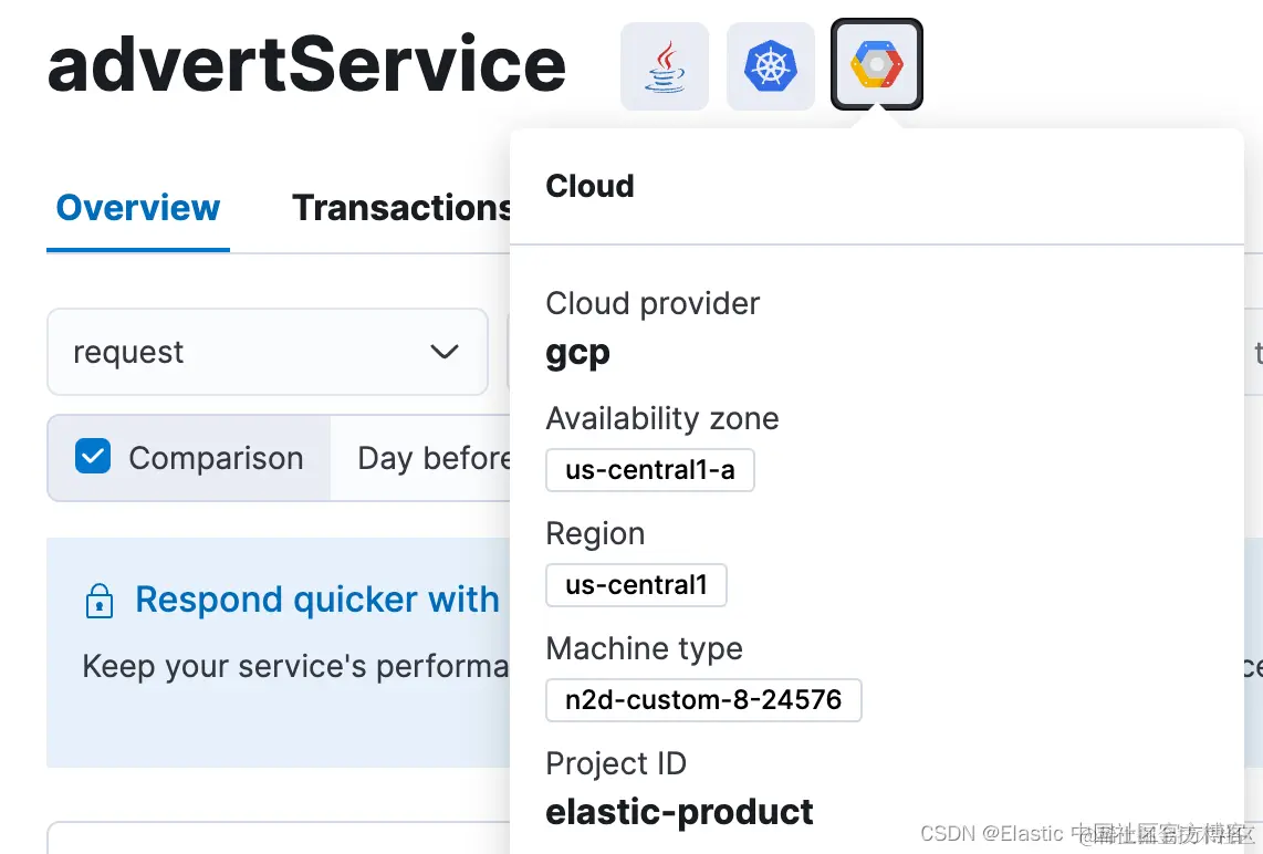 为了满足这一需求,OTel Java 代理的 Elastic 分发包括针对服务和云资源的内置自动检测器,特别是针对 AWS 和 GCP,这些资源源自 OpenTelemetry Java Contrib 存储库。 此功能默认启用,可增强可观察性并简化跨各种云平台的服务管理,使其成为任何基于云的部署的关键资产。