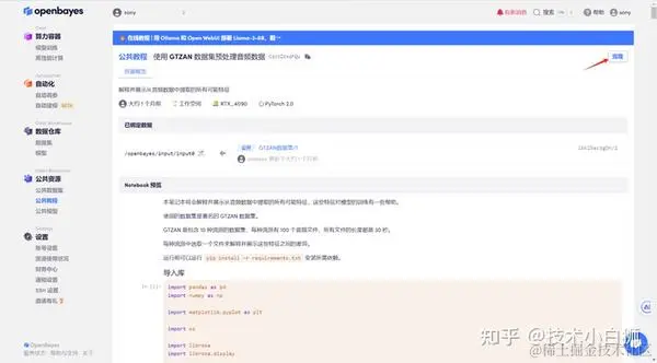 登录后,在左侧菜单栏打开「公共教程」,找到「使用 GTZAN 数据集预处理音频数据」。