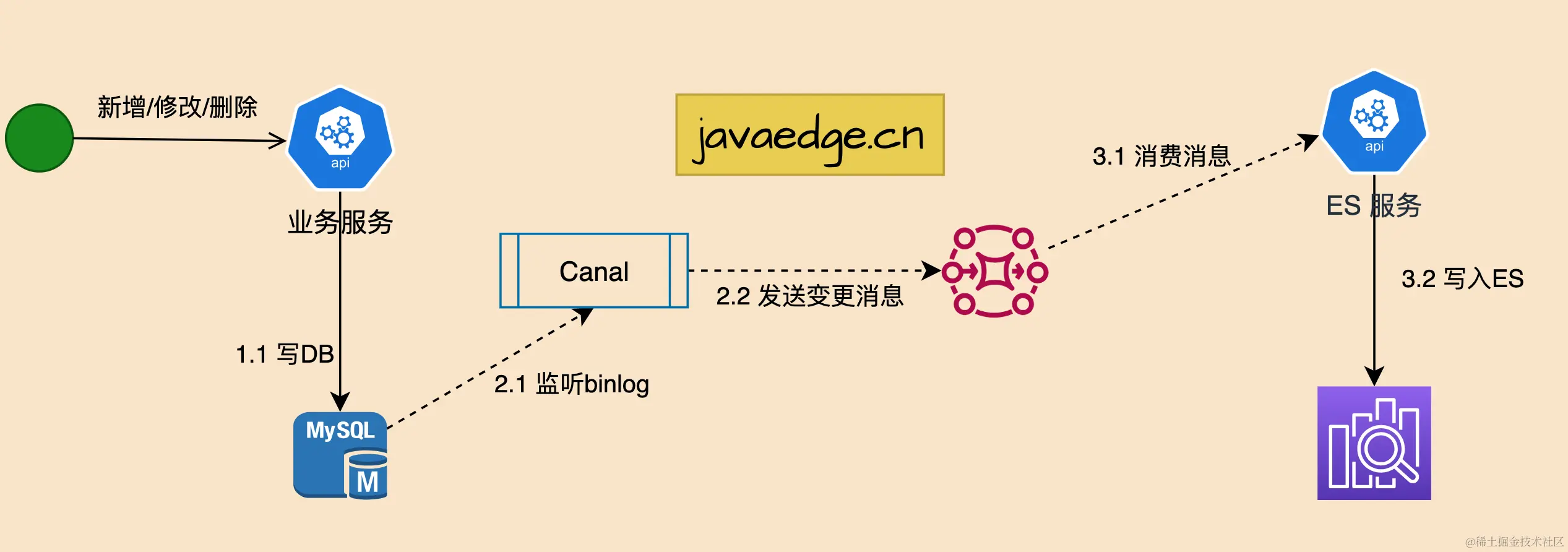 - 业务ES查询服务:通过ES SDK查询ES索引中的数据,通过接口返回给业务调用方