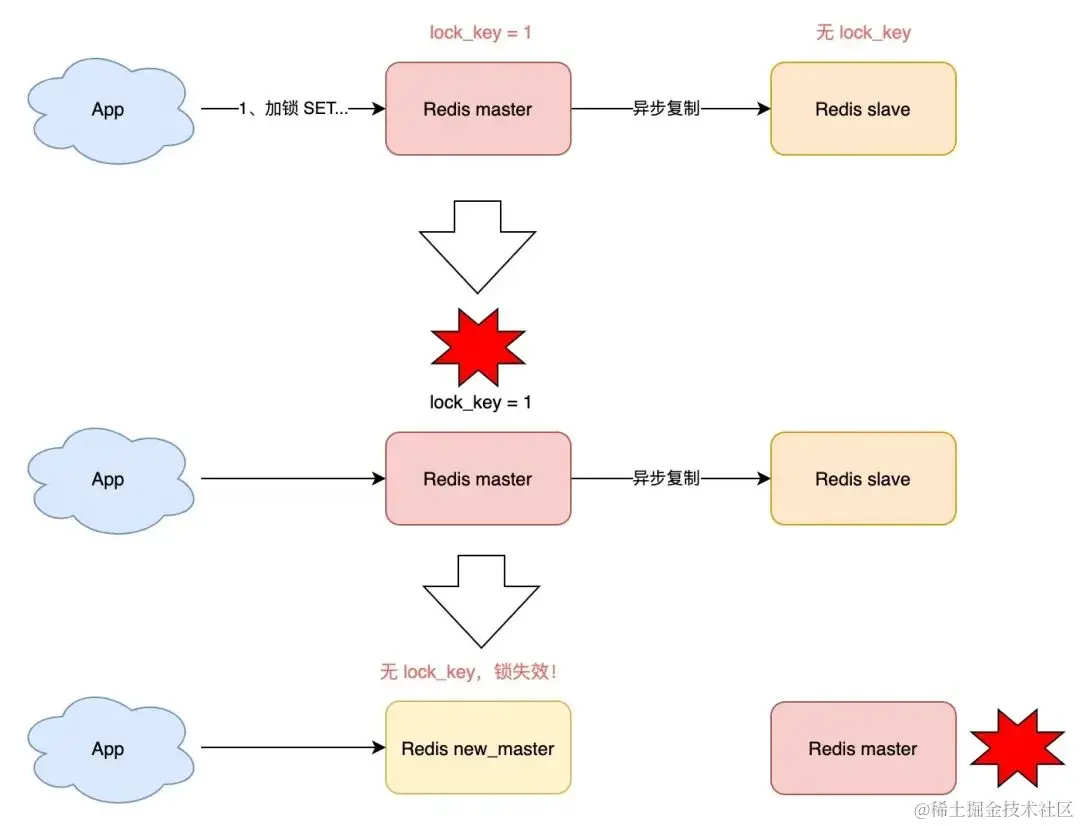- 很多人用分布锁,以为拿到锁后,就可以安心地去改共享资源,认为分布锁 100% 安全,其实不然,拿到锁后面临各种异常情况,都有可能导致锁失效,这时候再去改资源,可能锁已经被别人拿到去改资源了,产生并发冲突