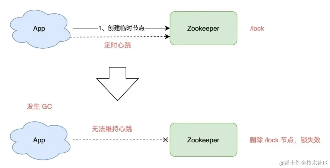 同样地,基于此问题,我们也讨论一下 GC 问题对 Zookeeper 的锁有何影响: