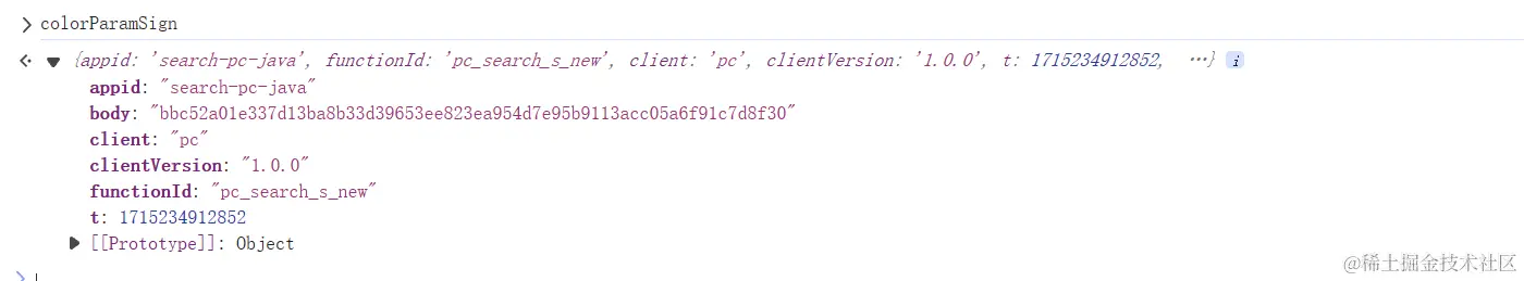 可以发现他将 colorParamSign 传入 window.PSign.sign 这个异步函数,返回的结果就有了 h5st 参数: