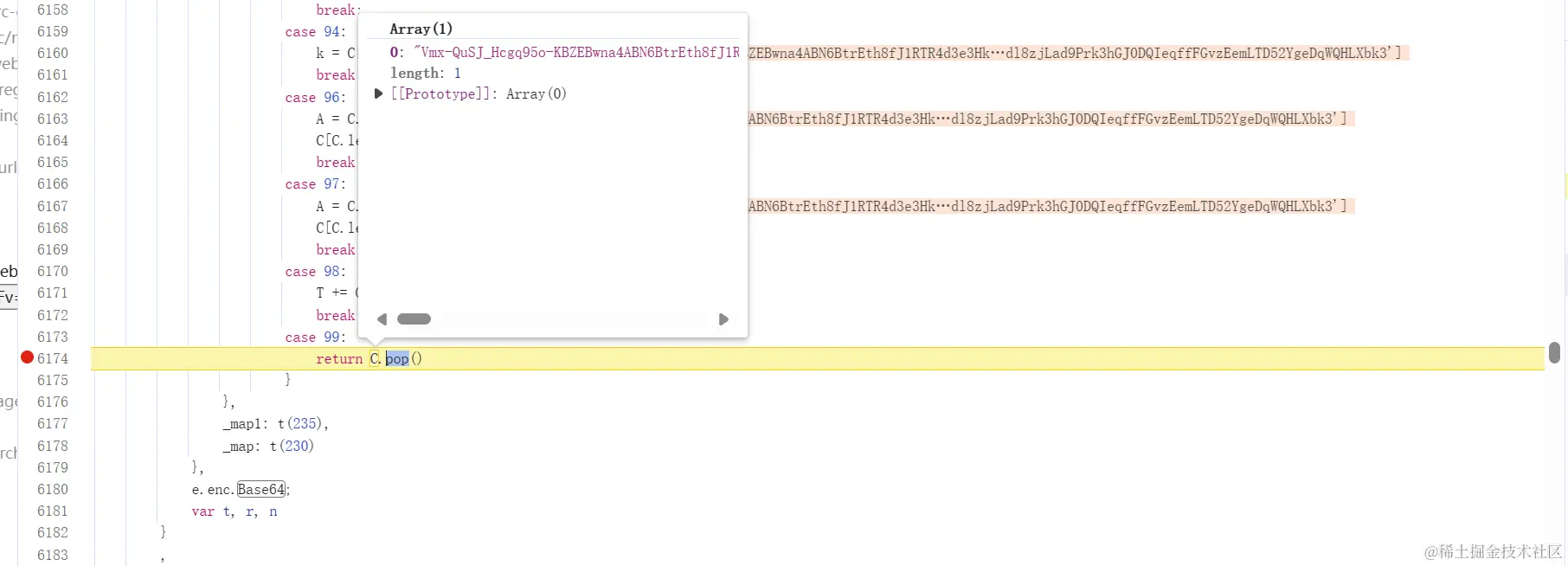 将 AES 加密的结果进行 Base64 编码(也是魔改了的),我们可以在 return 的地方断下来: