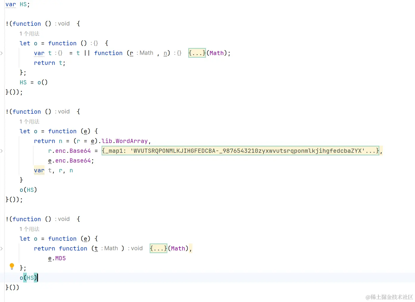 看似复杂,还有 ob 混淆等等,其实直接正常扣就行了,缺啥补啥,ob 混淆其实都没必要还原,手动扣就行,混淆的地方不多,大概有 10 处这样的函数,结构都一致: