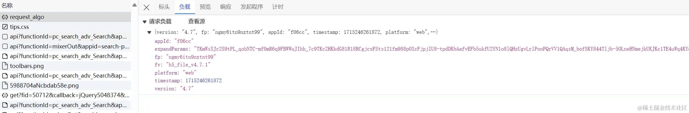 唯一要具体分析的就是 expandParams,这个也是走的上面魔改的 AES 加密生成,key 值不一样,明文主要就是一些环境值,可以先固定,这里就不具体分析了。