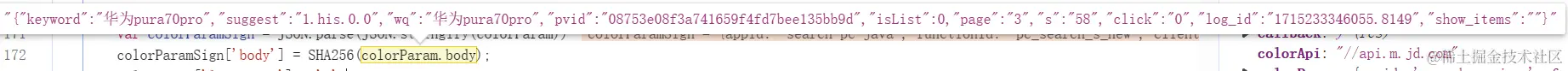 取了前面的查询参数,然后 colorParamSign 的 body 就是将前面查询参数的 body 经过 SHA256 加密,测试没有魔改,我们直接套库就行。