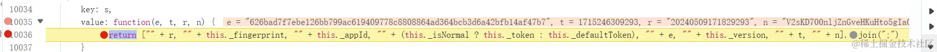 我们可以输出看看,找到如下位置断下,这里就是最后拼接生成 h5st 的位置: