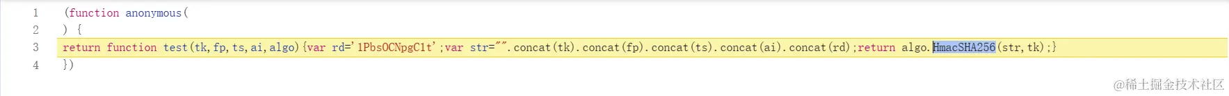 然后找了一下这个 test 是怎么来的,发现是 request_algo 接口 返回,注意 rd 和加密的函数都是动态的: