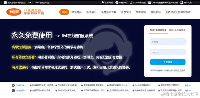OctIM是一款可以永久免费用的在线客服系统,对于广大初创型的企业来说,是一个很好的助力。初创公司因为前期的业务量以及访问流量不是很高,一般初步只需要满足访客的基本聊天咨询对话就可以了,所以,对于免费的可以永久使用的客服系统需求还是比较高的。OctIM在线客服系统,客户前期可以免费使用,等业务量与访问流量上来了以后,要以选择私有化独立部署,将以前的数据,完全搬到自己的服务器上。