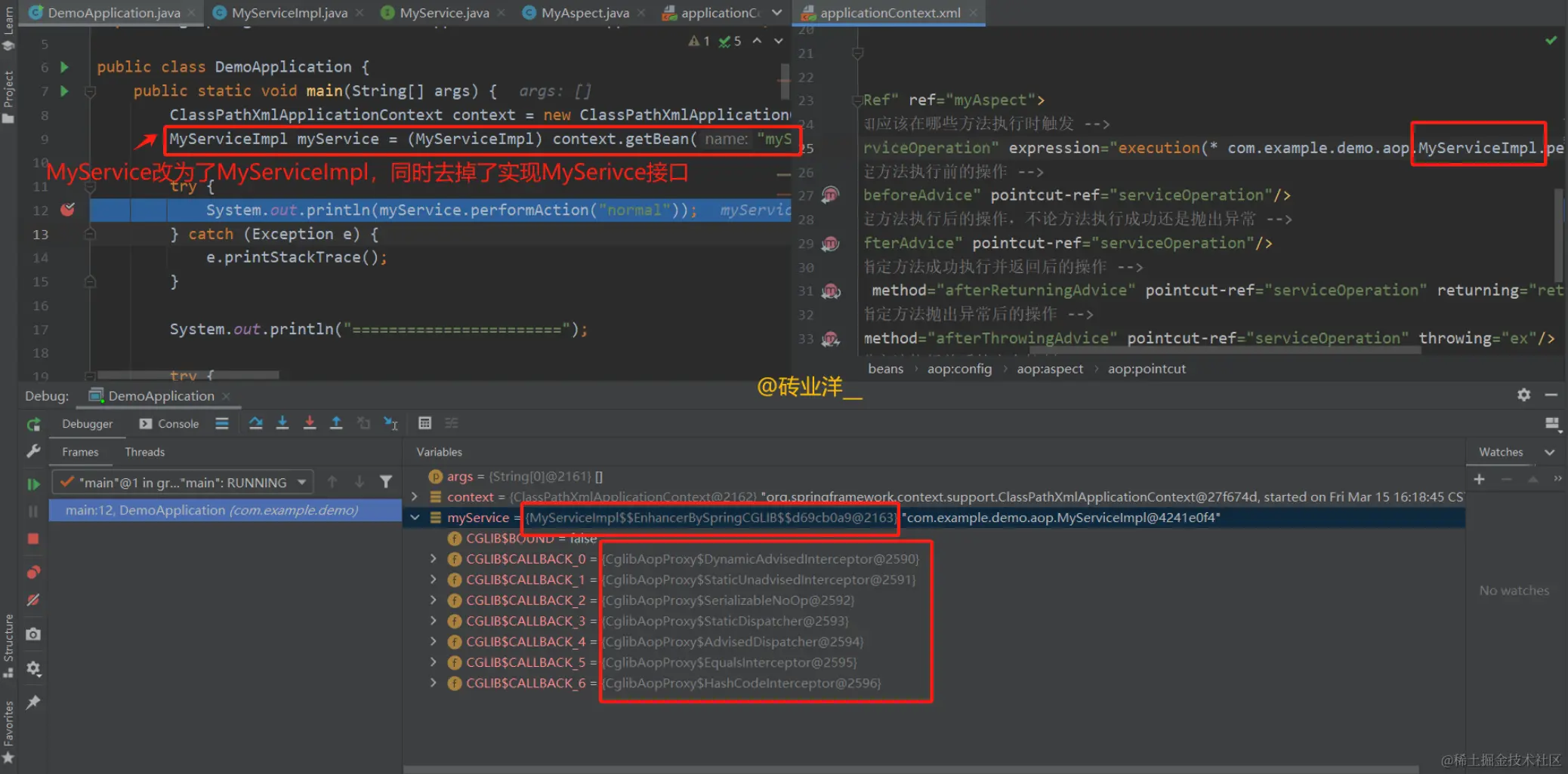第1种方法是去掉MyServiceImpl实现的MyService接口,然后把主程序和expression表达式对应的地方改成MyServiceImpl。