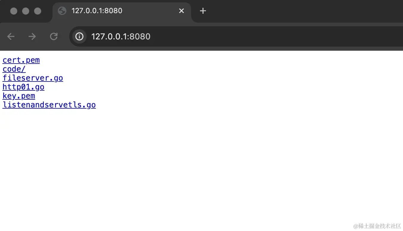 在浏览器中访问 http://127.0.0.1:8080 地址,可以看到本地目录中的所有文件和目录都可以被访问到。